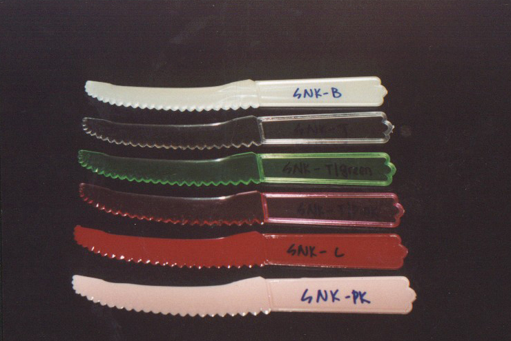 ITEM NO : SNK MATERIAL : PS SIZE : 220mm (L) COLOUR : TRANSPARENT (PINK, GREEN), MAROON, PEARL, PINK STD PACKING : 4000 PCS/CTN